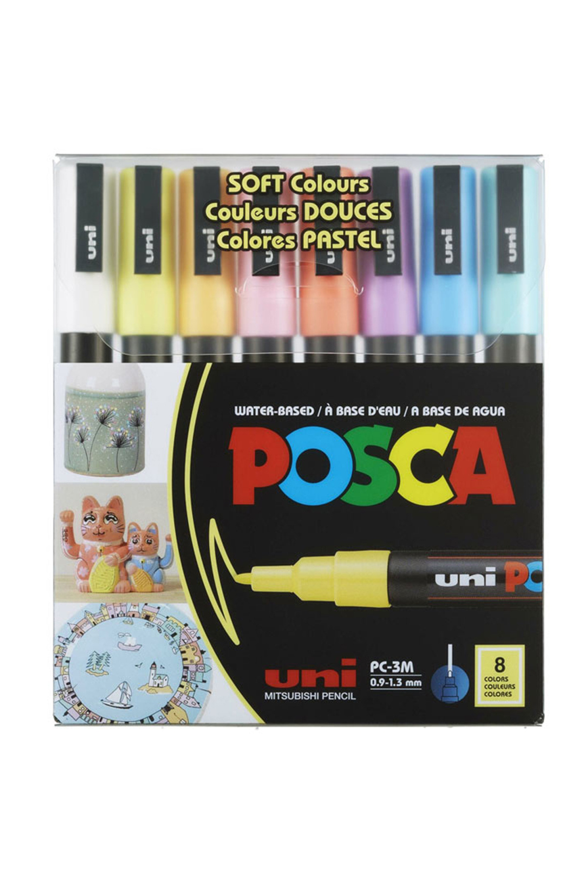 Uni Posca 0.9mm -1.3mm Su Bazlı Poster Markörü Ana Renkler 8'li Pc-3m/8c Set